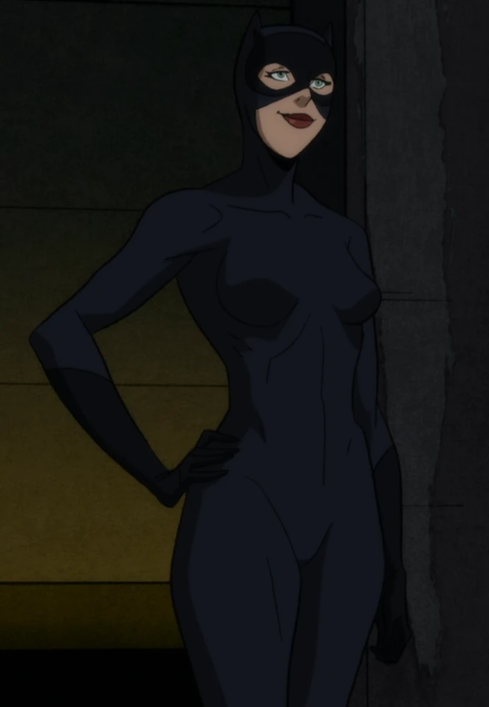 Selina is a beautiful young woman with short black hair, piercing green eyes, and full red lips. She has very slender build, yet curvaceous figure with an atgletic tone. Her main attire is a black dress and her dark gray catsuit with long black gloves and boots.